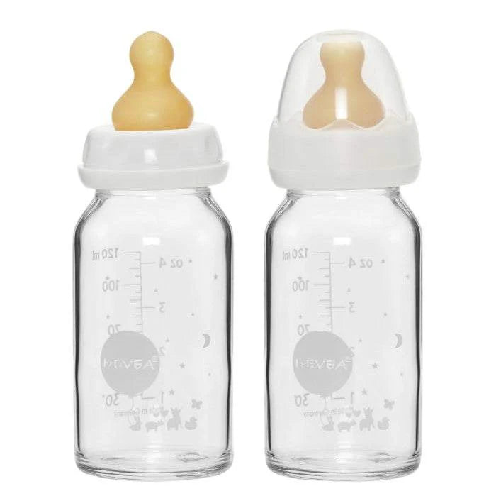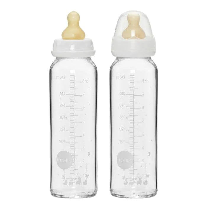 HEVEA Baby Glass paket flašica ima dve kalibrisane staklene boce napravljene od 100% borosilikatnog stakla. Boce su čvrste i ne upijaju sadržaj niti dozvoljavaju ulazak supstanci spolja, ne zadržavaju miris prethodnih sastojaka kada se peru.