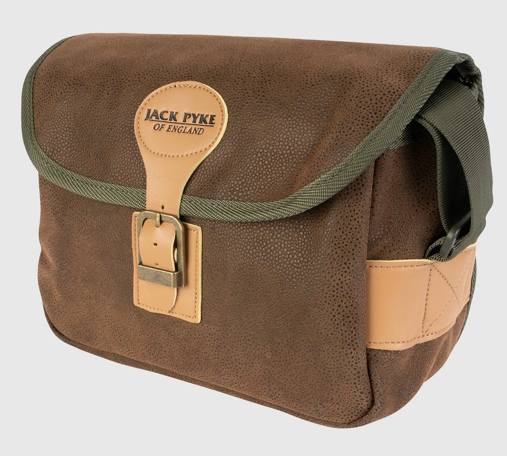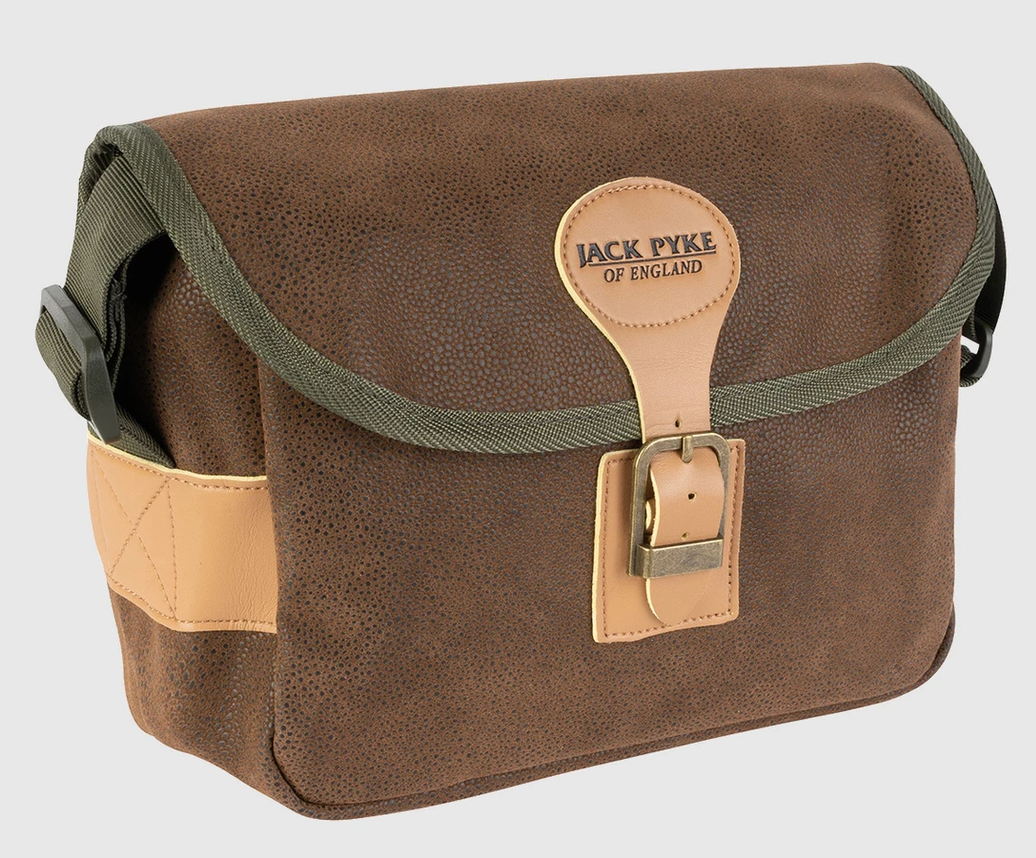 Jack Pyke Cartridge Bag Duotex sadrži oko 150 pakovanih kertridža. Duotek materijal torbi daje tradicionalni izgled seoskog stila i možete biti sigurni da su kertridži zaštićeni od elemenata. Tradicionalno kopčanje od veštačke kože i kopče dodaje elegantnom izgledu torbe. Da bi se obezbedila udobnost tokom celog dana, naramenica je potpuno podesiva.