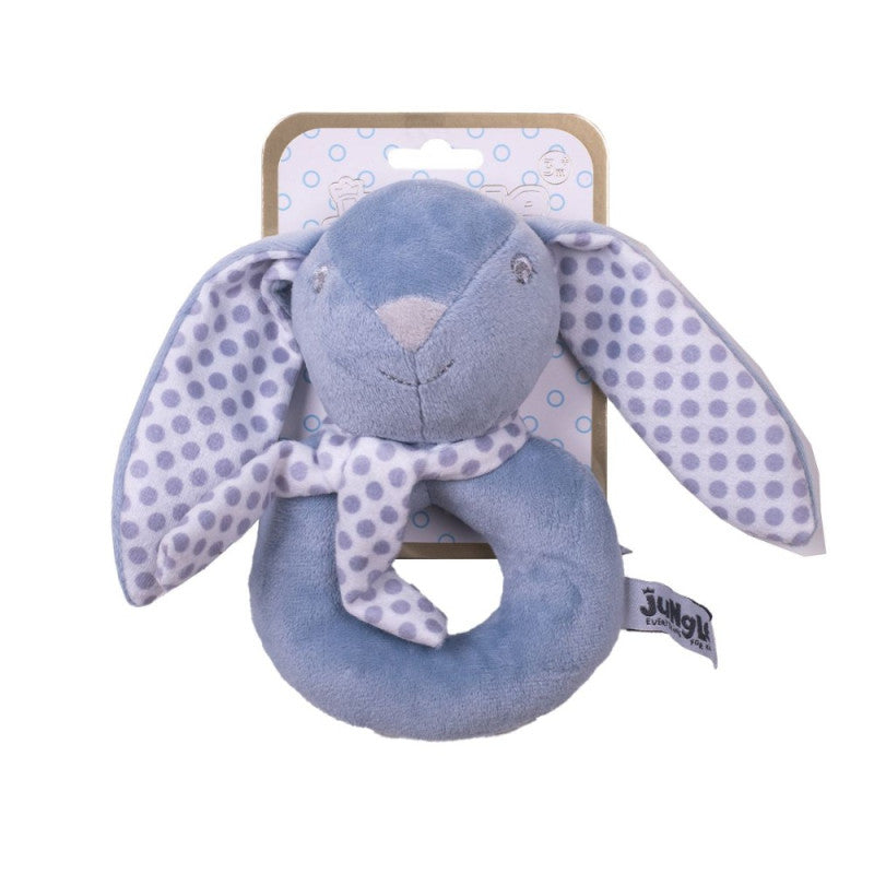 Plišana zvečka za bebe u obliku zeke. Razvija vidno-slušnu i motoričku koordinaciju. Igračka je prilagođena bebinim rukama. Boja: plava Uzrast 0-12 meseci Proizvodjač: O.S.L.O. Zemlja porekla: Kina
