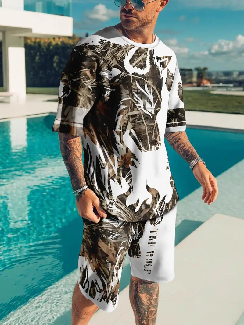 Ležerna sportska odela prozračna muška majica i pantalone za letnji 3D štampani komplet za odrasle muškarce.