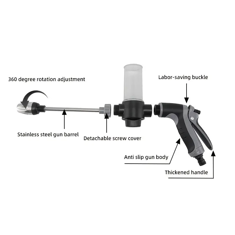Vodeni pištolj visokog pritiska sa dugom drškom - Pjenasti prskalica za pranje automobila za čišćenje i navodnjavanje - Podesiva mlaznica - Produžena šipka od nerđajućeg čelika