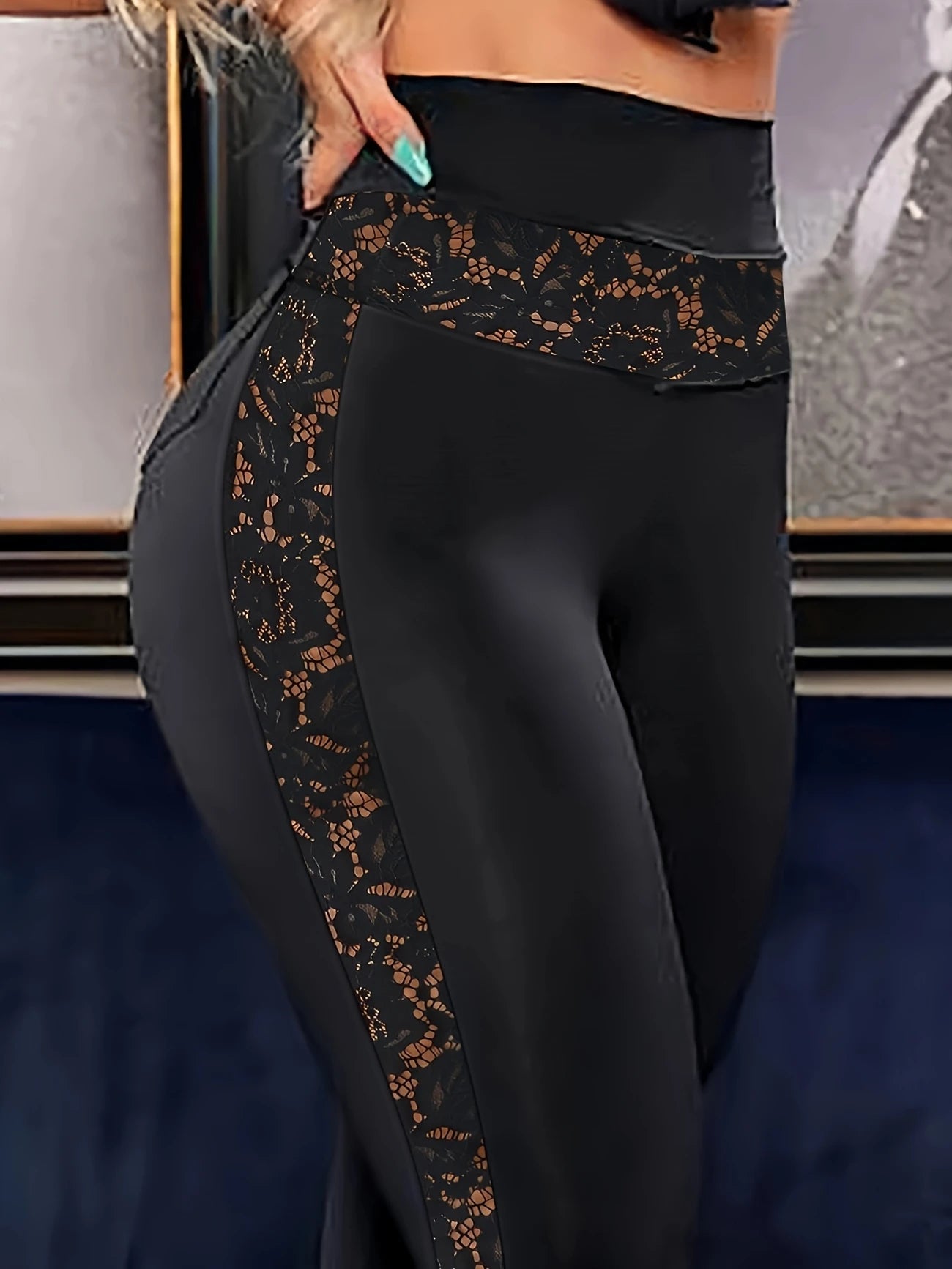Ženske dugaće pantalone visokog struka sa čipkom W81